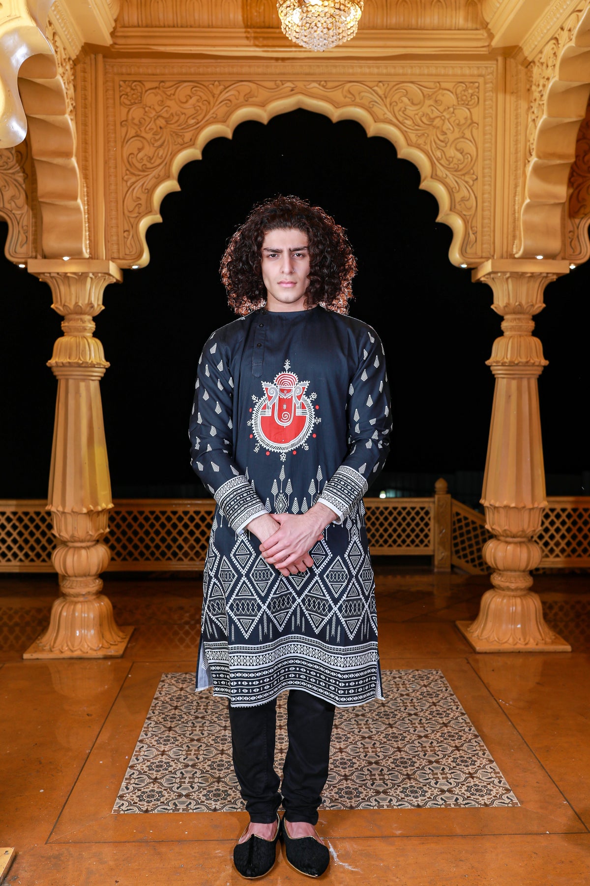 Pair this Black Kurta with the colours of Blue, Black or White and you are ready to stand out this Ganesh Chaturthi.