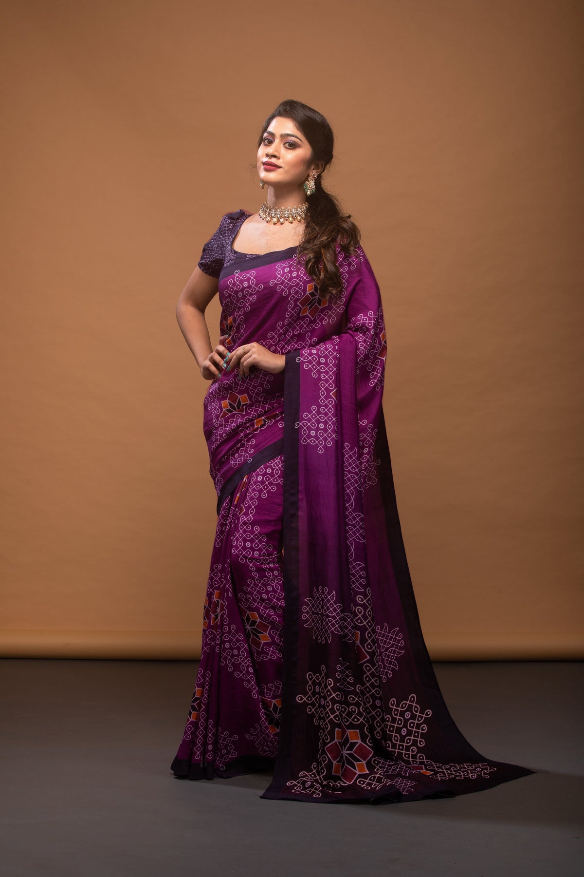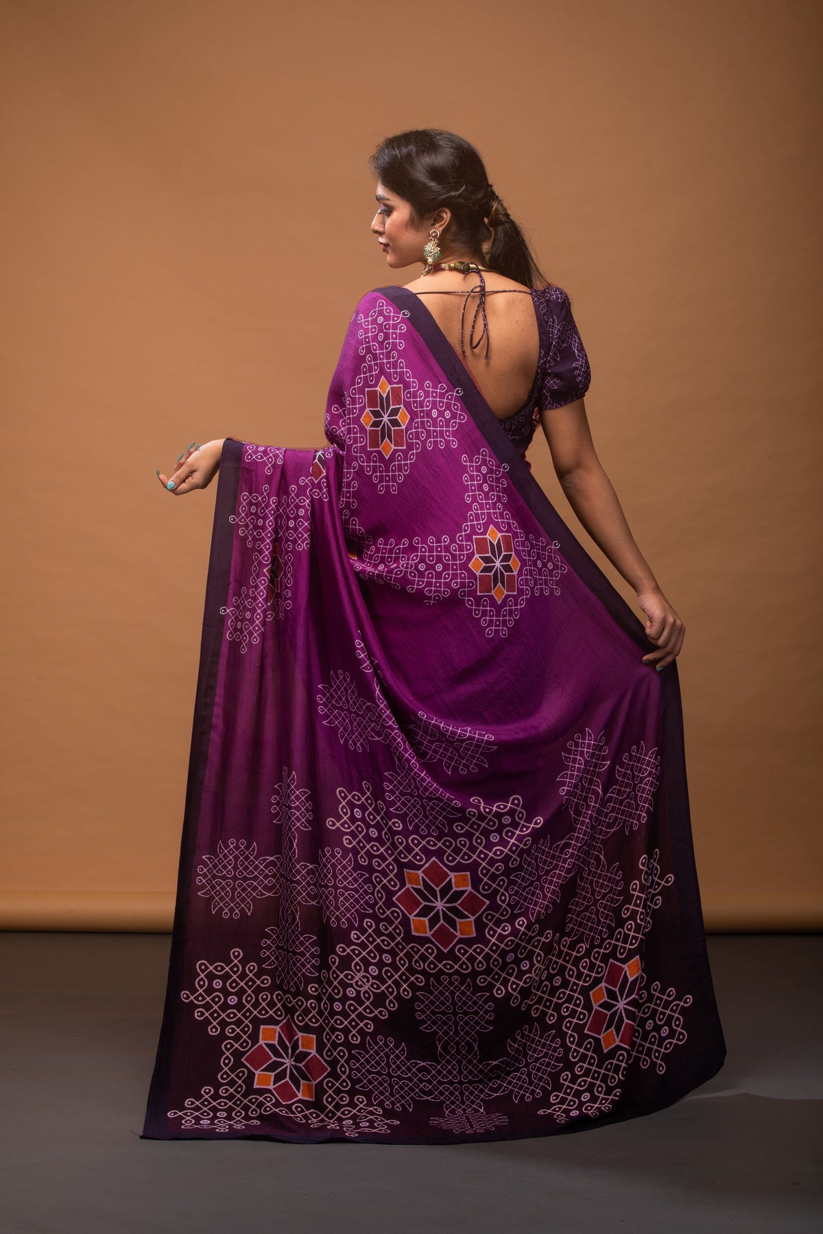 Embody the grace and strength of a goddess with the Graceful Goddess saree, a masterpiece inspired by the divine motifs of kolam. The intricate detailing and regal hues create a visual poetry that mirrors the strength and beauty of a goddess. Drape yourself in this exquisite piece from the House of Deepthi and feel the divine aura that emanates from every fold.